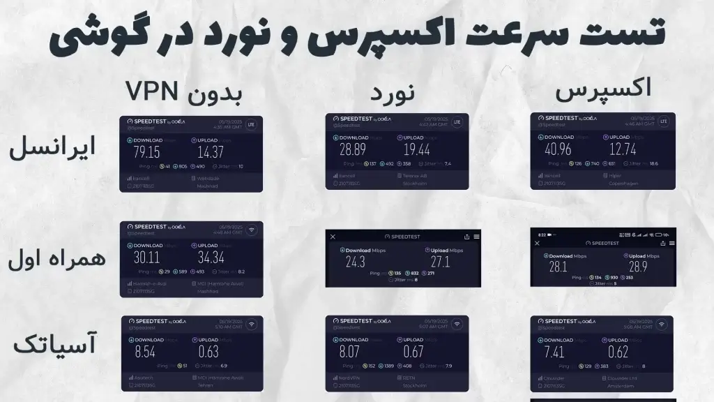 تست سرعت بدون وی پی ان رو نذاشتم چون با یکی گوشی یکیه دیگه