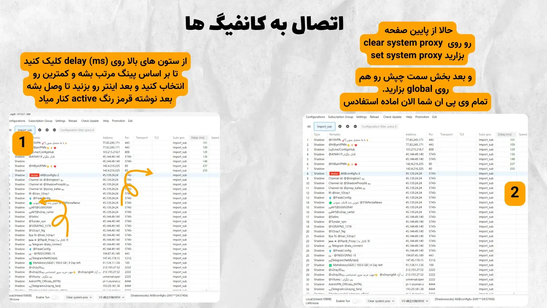 از اینجا به بعد رو با باید برای هردو روشی که گفتم انجام بدید تا کانفیگ ها بیاد و مرتب بشه.