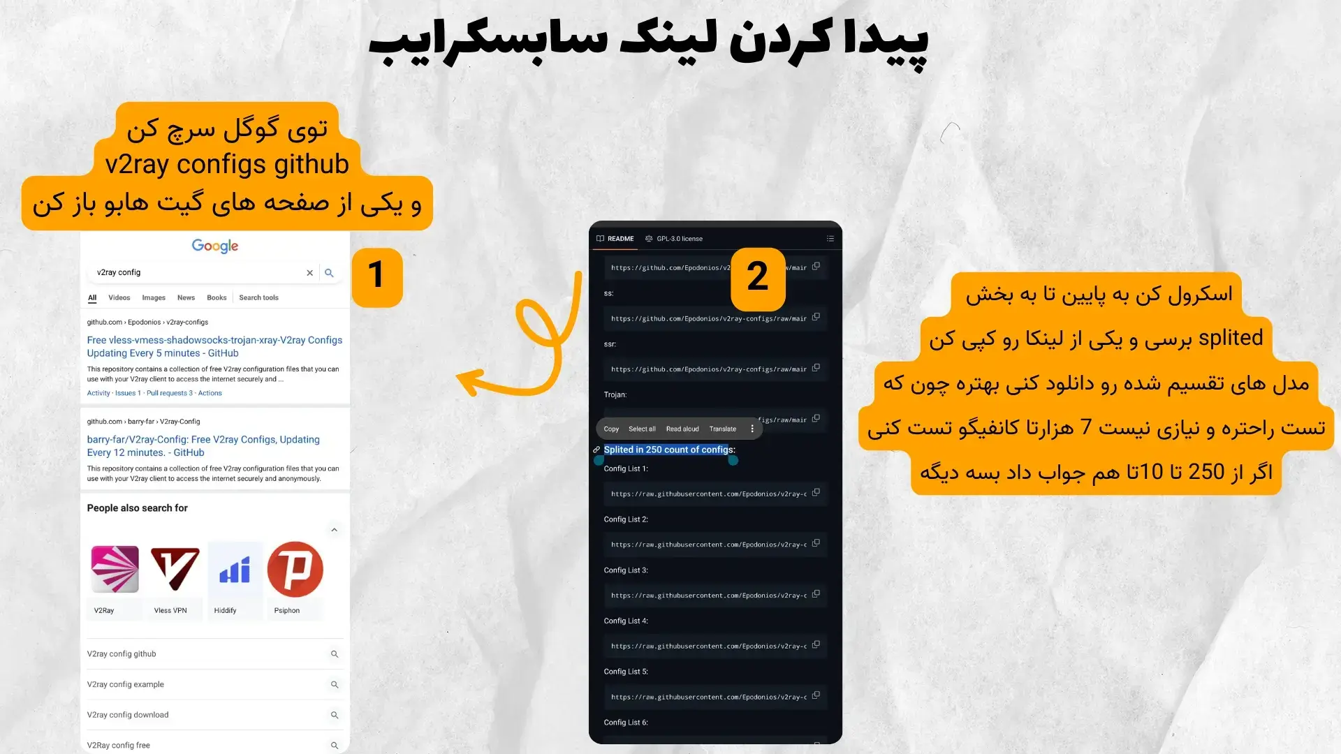 خب بعد از این که برنامه رو دانلود و نصب کردید ؛ باید بهش کانفیگ بدید و وارد کردن کانفیگ هم خیلی سادس ، توی گوگل سرچ میکنید v2ray configs و باز هم از لینک های گیت هاب استفاده میکنید.