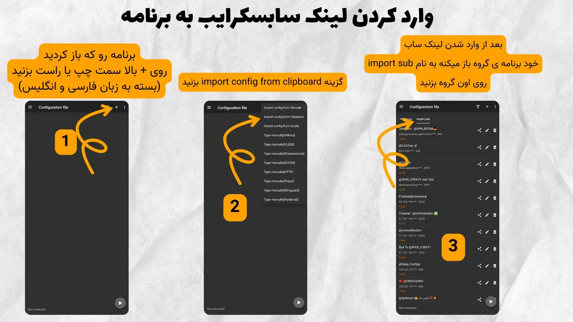 نحوه وارد کردن کانفیگ در برنامه V2rayNG اندورید.