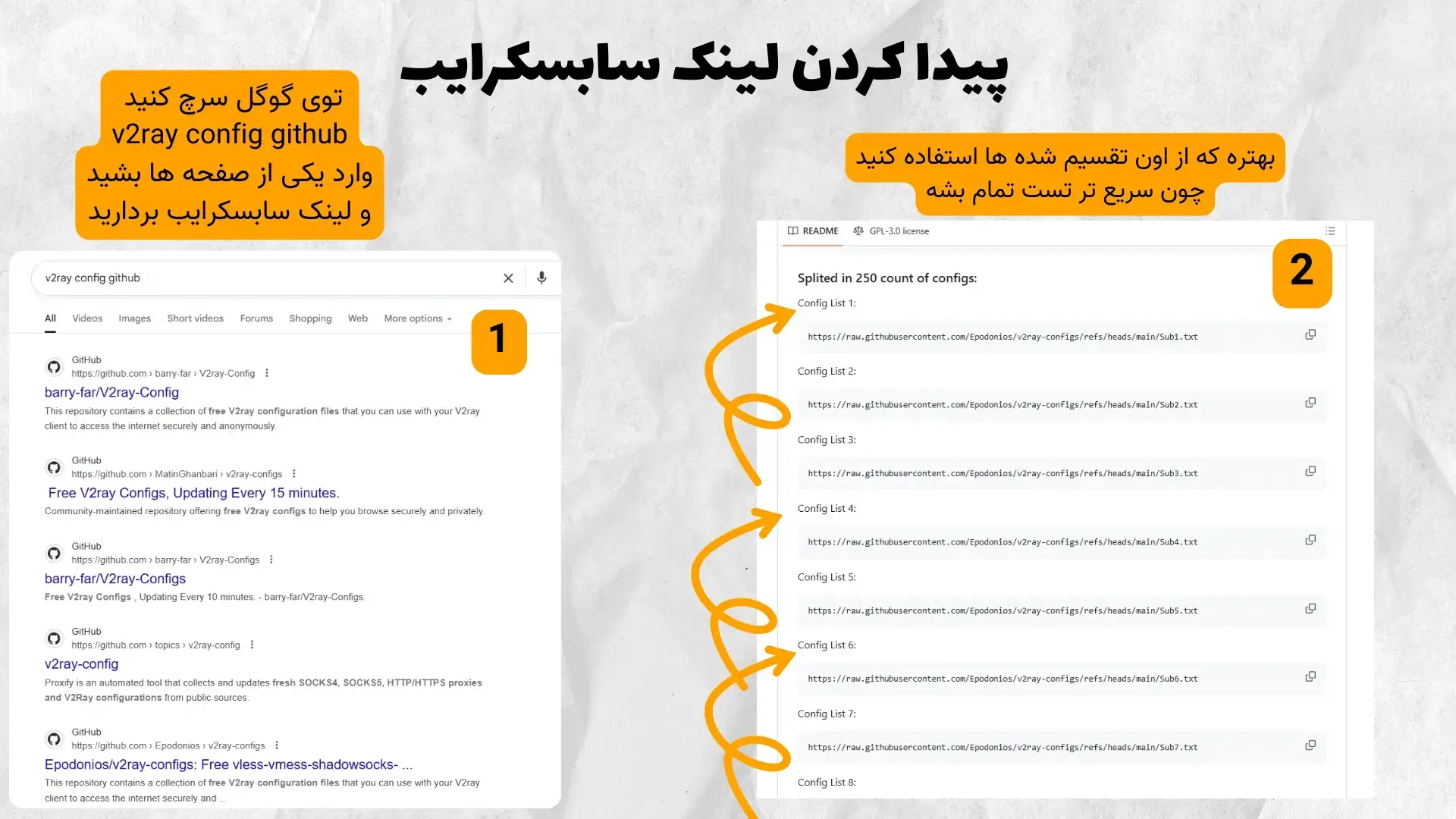 بعد که وارد یکی از لینک ها بشید قطعا اون کسی که صاحب اون صفحه گیت هاب هست ، لینک ساسبکرایب کانفیگ ها رو به صورت تقسیم بندی شده هم گذاشته ینی مثلا اگر 5 هزارتا کانفیگ داشته باشه توی لینک های 250 تایی تقسیمش کرده که اینطوری بتونید هم راحتتر تست کنید و هم دیگه اگر از اون 250تا جواب گرفتید با همونا کار کنید دیگه 5 هزار سرور رو الکی تست نکنید.