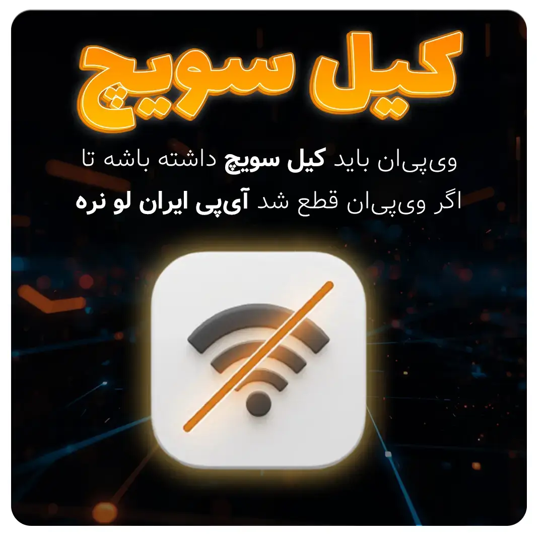 کیل سویچ یا دکمه خاموش یا هرچی اسمش میشه قابلیتیه که وقتی وی پی ان به صورت یهویی قطع بشه ، این قابلیت جلوی ارسال دیتا رو بگیره یا به صورت سادهتر اینترنت رو هم بلاک کنه که دیگه ارتباطی برقرار نباشه و ایپی اصلی ما لو نره.